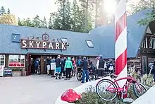 SkyPark at Santa's Village is an Outdoor Adventure Park with year-round mountain biking, hiking, fly fishing and open air activities in the Skyforest section of Lake Arrowhead, California. The Park resides on 230-acre (0.93 km2) of natural forest with meadowlands, ponds and an apple orchard. At the core of SkyPark is The Village, which includes historic log cabin restaurants and shops, seasonal entertainment, and open-air activities. SkyPark’s nearly 10 miles (16 km) of year-round mountain bike trails, hiking trails, fly fishing, archery, ziplines, seasonal ice skating or roller skating rink, rock climbing and more are available to the public for the price of admission. SkyPark’s conservation program includes the Henck Meadowlands Conservation Trail, Conservation Hikes, and Outdoor Educational Programs for school-age children. 30-acre (0.12 km2) of the park have been preserved in their pristine condition to remain unused. SkyPark at Santa's Village opened on December 2, 2016.