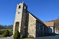 Slate Mountain Presbyterian Church and Cemetery is a historic Presbyterian church and cemetery in Floyd County, Virginia. It was built in 1932, and is one of six "rock churches" founded by Bob Childress and built between 1919 and the early 1950s. The building consists of a one-story, gable-fronted rectangular form with a roughly square, Gothic Revival bell tower centered on the building's front elevation. The building was erected on a concrete block foundation, and has walls of light wood framing covered with a thick quartz and quartzite fieldstone exterior veneer.[3]