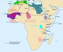 According to Raëd Bader, based on estimates of the Trans-Saharan trade, between 1700 and 1880 Tunisia received 100,000 black slaves, compared to only 65,000 entering Algeria, 400,000 in Libya, 515,000 in Morocco and 800,000 in Egypt.[5]
