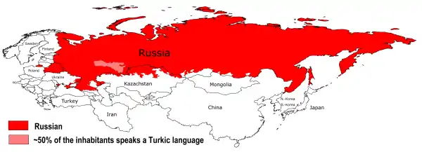 The current geographical distribution of natively spoken Slavic languages includes the Balkans, Central and Eastern Europe, and all the way from Western Siberia to the Russian Far East. Furthermore, the diasporas of many Slavic peoples have established isolated minorities of speakers of their languages all over the world. The number of speakers of all Slavic languages together was estimated to be 315 million at the turn of the twenty-first century.[4] It is the largest ethno-linguistic group in Europe.[5][6]