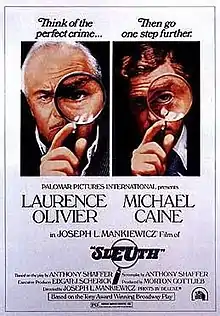 Sleuth is a 1972 British-American mystery comedy thriller film directed by Joseph L. Mankiewicz and starring Laurence Olivier and Michael Caine. The screenplay by playwright Anthony Shaffer was based on his 1970 Tony Award-winning play. Both Olivier and Caine were nominated for Academy Awards for their performances. This was Mankiewicz's final film. Critics gave the film overwhelmingly positive reviews.[5]