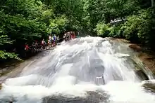![]() View of swimmers on Sliding Rock from the Overlook, looking towards the Plunge Pool | |