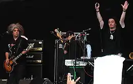 A single from the album, "Wait and Bleed", was nominated for Best Metal Performance at the 2001 Grammy Awards, but lost to Deftones' "Elite".[36] The song was also named the 36th greatest metal song of all time by VH1.[37] The release of the album and the touring which followed greatly increased the band's popularity. The album became the "biggest selling extreme metal album at the time."[38] It was ranked by American SoundScan as the fastest-selling metal debut in SoundScan's history.[39] On May 2, 2000, the album was certified platinum by the Recording Industry Association of America (RIAA), a first for any album released by Roadrunner Records.[40] On February 5, 2005, the RIAA certified Slipknot's self-titled album double platinum.[40] In Canada, the Canadian Recording Industry Association certified the album as platinum on June 10, 2000.[41] The British Phonographic Industry certified Slipknot's self-titled album as platinum on October 17, 2008 in the UK.[42]