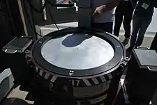 The telescope's imaging camera is made up of 30 CCD chips, each with a resolution of 2048×2048 pixels, totaling approximately 120 megapixels.[11] The chips are arranged in 5 rows of 6 chips. Each row has a different optical filter with average wavelengths of 355.1, 468.6, 616.5, 748.1 and 893.1 nm, with 95% completeness in typical seeing to magnitudes of 22.0, 22.2, 22.2, 21.3, and 20.5, for u, g, r, i, z respectively.[12] The filters are placed on the camera in the order r, i, u, z, g. To reduce noise, the camera is cooled to 190 kelvins (about −80 °C) by liquid nitrogen.