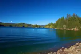 The Jenkinson Lake watershed consists of the approximately 16.5 square mile area between Sly Park Dam and the Cold Canyon Tributary of Sly Park Creek.[2] This area includes both forks of Sly Park Creek, Hazel Creek, and the Cold Canyon Tributary of Sly Park Creek. Jenkinson Lake receives insufficient inflow from this area and additional water is diverted from outside the watershed through the Camp Creek Diversion Tunnel to meet demand.[3] The area played a significant role in the gold rush era of California's history.