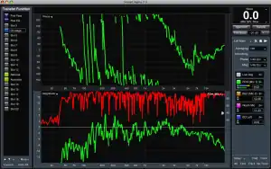 In Spectrograph view, Smaart displays a real-time spectrum analysis, showing the relative strength of audio frequencies for one audio signal. Needing only one channel of audio input, this capability can be used for a variety of purposes. With Smaart's input connected to the mixing console's pre-fade listen (PFL) or cue bus, Spectrograph view can display the frequency response of individual channels, several selected channels, or various mixes.[9] Spectrograph mode can be used to display room resonances: pink noise is applied to the room's sound system, and the signal from a test microphone in the room is displayed on Smaart. When the pink noise is muted, the display shows the lingering tails of noise frequencies that are resonating.[9]