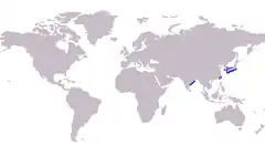The small-scale whiting occupies a fairly restricted range in the northwest Pacific Ocean consisting of southern Japan, Taiwan, Korea[4] and India.[5] In Japan the species is known from the southern half of the island chain below Tokyo in the west and Yokohama in the east. The species is rare in both Korea and India, with only a single reported capture of the species in these countries. The species inhabits waters from 0 to 30 m in depth, often found on well developed tidal flats in the estuaries of large rivers.[3] The larvae and juveniles of the species commonly inhabit these environments also, with juveniles often inhabiting the shallowest parts of the tidal flats.[6]