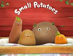Small Potatoes is an animated pre-school series written and directed by Ethan Blonder. It was produced by Blonder's company, Potato Productions, from its second studio in London. The show features a group of four potatoes who sing songs. 27 shorts were produced.[1] The "Small Potatoes" series is currently airing on CBeebies in the UK, ABC Kids in Australia and on the Disney Junior channel in the United States. The series was followed by a motion picture in 2013, Meet the Small Potatoes. Small Potatoes is also available on BBC iPlayer.
