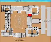 The Small Throne Room of the Winter Palace, St Petersburg, also known as the Peter the Great Memorial Hall, was created for Tsar Nicholas I in 1833, by the architect Auguste de Montferrand.[1] Following a fire in 1837, in which most of the palace was destroyed, the room was recreated exactly as it had been before by the architect Vasily Stasov.