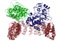 STag contributes to this process through its interaction with protein phosphatase 2A (PP2A).[14] The active form of PP2A consists of a heterotrimer assembly of three subunits. X-ray crystallography of the STag-PP2A protein complex demonstrates that STag replaces one subunit in the complex, thereby inactivating it.[2][1][15][16]