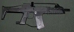The SP-8 is an electro-pneumatic paintball marker manufactured by Smart Parts. It is the company's first attempt at a milsim marker, which are popular among scenario paintball players. Mechanically, the SP-8 is very similar to the popular Smart Parts Ion, but the body is modeled after the Heckler & Koch XM8 Assault Rifle.