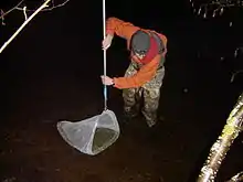 In the Canadian provinces and U.S. states around the Great Lakes, "smelt dipping" is a common group sport in the early spring and when stream waters reach around 4 °C (39 °F). Fish are spotted using a flashlight or headlamp and scooped out of the water using a dip net made of nylon or metal mesh. The smelt are cleaned by removing the head and the entrails. Fins, scales, and bones of all but the largest of smelts are cooked without removal.[4]
