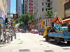 Smithfield is one of the few streets in Hong Kong without the use of words such as "Road", "Street", "Path", "Lane" etc.[29] Other notable examples are Queensway in Admiralty, Broadway (百老匯街) in Mei Foo and Glenealy in Mid-Levels.