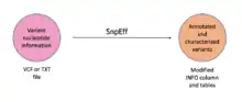 SnpEff is an open source tool that annotates variants and predicts their effects on genes by using an interval forest approach. This program takes pre-determined variants listed in a data file that contains the nucleotide change and its position and predicts if the variants are deleterious. This program was first created by Pablo Cingolani to predict effects of single nucleotide polymorphisms (SNPs) in Drosophila,[1] and is now widely used at many universities such as Harvard University, UC Berkeley, Stanford University etc.[2] SnpEff has been used for various applications[3][4][5] – from personalized medicine at Stanford University,[6] to profiling bacteria.[7] This annotation and prediction software can be compared to ANNOVAR and Variant Effect Predictor, but each use different nomenclatures [8][9]