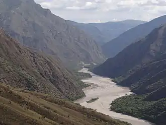 The Soatá Formation unconformably overlies the Cretaceous Capacho Formation, and is overlain by the Holocene infill sediments of the Chicamocha River, the course of which severely eroded and fragmented the Soatá formation.[4] The formation is subdivided into three units of different lithological character and sedimentary dip in a terrace setting. The Soatá Formation is time-equivalent with the upper part of the Sabana Formation on the Bogotá savanna and the Chinauta deposits near Fusagasugá in the southwest of the Altiplano.[5][6] Two samples were analysed for radiometric dating and provided ages of 45,900 ± 1,600 and 39,600 ± 800 years BP.[7] This corresponds to the Chicagota interstadial and the Tagua stadial, when the glaciations were at their maximum extent.[8][9]