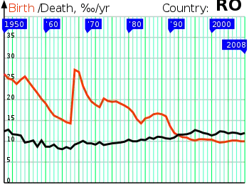 These pro-natalist measures had some degree of success, as a baby boom resulted in the late 1960s, with the generations born in 1967 and 1968 being the largest in the country's history. The natalist policies temporarily increased birth rates for a few years, but this was followed by a later decline due to an increased use of illegal abortion.[32][33] Ceaușescu's policy resulted in the deaths of over 9,000 women due to illegal abortions,[34] large numbers of children put into Romanian orphanages by parents who couldn't cope with raising them, street children in the 1990s (when many orphanages were closed and the children ended up on the streets), and overcrowding in homes and schools.