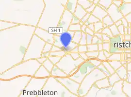 Sockburn is an industrial suburb of Christchurch, New Zealand, located between Hornby and Riccarton, some 7 kilometres (4.3 mi) west of the Christchurch city centre. The suburb is roughly bounded by the triangle formed by State Highway 1 in the west, Main South Road (SH73a) in the south and SH73 in the north. The suburb of Wigram, containing the city's former RNZAF base (now an aviation museum), is located nearby. One of the city's main horseracing circuits, Riccarton Racecourse, is located close to Sockburn's northern edge, and Racecourse was the initial name for the area. The name Sockburn is likely to have come from the village of Sockburn in County Durham, England.[3]