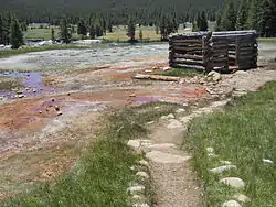 The Soda Springs Cabin is a historic structure in Yosemite National Park in the US, built over Soda Springs. It was built around the year 1889 by John Baptist Lembert, the first European settler on the Tuolumne Meadows area of Yosemite. Lembert had filed a claim to 160 acres (65 ha) in Tuolumne Meadows in 1885 after spending three summers in the area with a flock of angora goats. He built a log cabin directly over the largest soda spring in the area. Although the property was within the park boundaries, Lembert received a patent to the property in 1895. Lembert's cabin was built along the Great Sierra Wagon Road over the Sierra Nevada. He also became a guide for tourists in the high country, gaining a reputation as a naturalist and entomologist. He spent the winter months near Cascade Creek in the Yosemite Valley.[2]