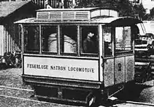 These locomotives were always called "soda locomotives" (sodium carbonate) although "caustic soda locomotives" (sodium hydroxide) would be a more precise description. The misleading terminology was most likely used, to increase their acceptance by the public, which was used to using washing soda but might have been frightened by the nasty alkali burns sitting next to several tons of hot caustic soda.[2]