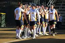 Softball saw a "benefit" in the bombing of Darwin and the inclusion of Australia in World War II in terms of bringing in American military personnel who brought softball with them to this territory.[1] Softball was being played in the Australian Capital Territory by the mid-1950s with the sport being heavily influenced by the community in Queanbeyan and elsewhere in New South Wales. When efforts began to try to create a territory-based organisation in the mid-1950s, they initially tried to have Queanbeyan included inside the ACT as the two are very close geographically, with teams from the area competing against each other.[2] In 1960, the national association investigated whether or not a territory based association could be accepted into the national organisation based on the constitution. They sent the question to the organisation's lawyers to attempt to resolve the query. The following year, women from the ACT were informally admitted while they awaited a legal answer.[2] In 1961, the Australian Capital Territory state softball federation aligned itself with the Australian Women's Softball Council.[3][4] In 1971, there were 27 teams affiliated with the territory organisation, 169 in 1975, 175 in 1976, 208 in 1977, 267 in 1978, 350 in 1983 and 338 in 1984.[5]