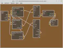Alsa Modular Synth 2.1.2 with an example preset, running on Linux Mint 20 Xfce