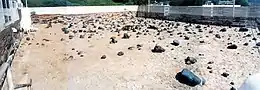 To test robotic prototypes and applications under natural lighting conditions, JPL built a simulated Martian landscape called "Mars Yard". The test area measured 21 by 22 m (69 by 72 ft) and had a variety of terrain arrangements to support multiple test conditions. The soil was a combination of beach sand, decomposed granite, brick dust, and volcanic cinders. The rocks were several types of basalts, including fine-grained and vesicular in both red and black. Rock-size distributions were selected to match those seen on Mars and the soil characteristics matched those found in some Martian regions. Large rocks were not Mars-like in composition, being less dense and easier to move for testing. Other obstacles such as bricks and trenches were often used for specialized testing.[61] Mars Yard was expanded in 1998 and then in 2007 to support other Mars rover missions.[62]