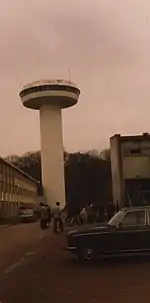 Solar Observatory Tower Meudon is a 36.47 metre tall tower built of reinforced concrete on the area of Meudon Observatory in Meudon, France, which has in its interior a spectrograph for examination of the sun. Solar Observatory Tower Meudon was built in 1964-65, and is a solar tower, a type of solar telescope. It has a shaft diameter of 6.6 metres. In a height of 30.57 metres it has an observatory floor with 18.4 metre diameter. The shaft of the tower consists of two concrete tubes which are separated by a 10 centimetre wide air spelt, in order to avoid wind induced vibrations.