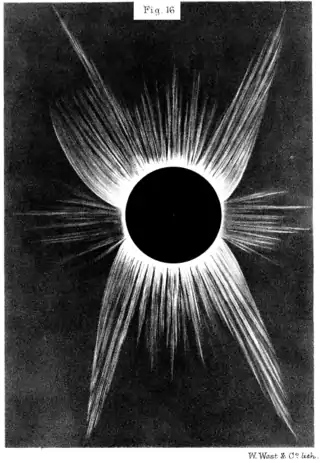 Astronomers J. N. Lockyer and Arthur Schuster traveled to observe the eclipse and measure spectral lines to determine the elemental contents of the solar corona.[1]