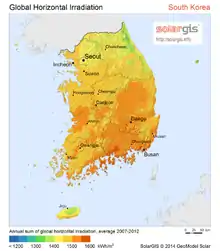 South Korea plans to meet 20 percent of its total electricity consumption with renewables by 2030, the energy ministry said the plan called for adding 30.8 GW of solar power generating capacity and 16.5 GW of wind power capacity.[1]