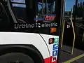 The IAA 2012 in Hanover saw the première of the first 100% electric bus of the MAXI class – the Urbino 12 electric.[2] The manufacturer used a powertrain based on an asynchronous, four-pole motor of 160 kW in the prototype vehicle. Moreover, lithium-ion batteries with a capacity of 210 kWh were used to store energy recuperated during braking. A plug-in connector installed in the vehicle enabled recharging by means of an external power source. The producer also decided to electrify all external devices usually fed from a diesel engine, including i.a. air conditioning with an in-built CO2 heat pump, that is a device also used for heating in the bus. External and interior lighting was based on LED technology. The graphic symbol of the Urbino electric featured a green dachshund, the trademark symbol of Solaris, with a cable and plug instead of a tail.[5][1]