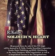"Soldier's Heart" is a 2001 song by R. Kelly. The song, written and produced by Kelly himself, is a tribute to the soldiers in America. It appeared on some European releases of "The World's Greatest" as a B-side. The song was later released as a single in 2003 and appeared on Second official compilation album called My Diary released in 2005, renamed "Front Line".[1] Kelly donated all the proceeds from this song to the families of the American Soldiers. The song peaked at number 80 on the Billboard Hot 100 singles chart.[2]