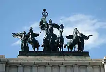 The arch was designated a landmark in 1973,[7] and the crowning sculpture was restored after the chariot's figure fell out in 1976. The occasionally publicly accessible observation deck at the top of the Soldiers' and Sailors' Arch was closed in the 2000s because the deck had severely degraded. In 2018, it was announced that as part of a renovation of Grand Army Plaza, the arch's observation deck would be restored and reopened.[8]