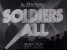 Soldiers All is a 20-minute 1941 Canadian documentary film, made by the National Film Board of Canada as part of the wartime Canada Carries On series. The film was produced by Stuart Legg.[1] Soldiers All describes the experiences in 1941 of soldiers, airmen and sailors in Great Britain and Canada during wartime.[2] The film's French version title is Frères d'armes.
