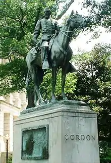 Borglum received several major public commissions, including an equestrian monument of General John Brown Gordon for the grounds of the Georgia State Capitol in Atlanta (1907), one of Rough Rider Buckey O'Neill for the plaza in front of the courthouse in Prescott, Arizona (1907), and The Pioneer, which was erected in the Court of Honor at the Panama–Pacific International Exposition in San Francisco (1915).