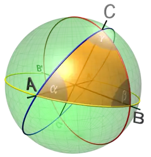 Spherical geometry differs from planar Euclidean geometry, so the solution of spherical triangles is built on different rules. For example, the sum of the three angles α + β + γ depends on the size of the triangle. In addition, similar triangles cannot be unequal, so the problem of constructing a triangle with specified three angles has a unique solution. The basic relations used to solve a problem are similar to those of the planar case: see Spherical law of cosines and Spherical law of sines.
