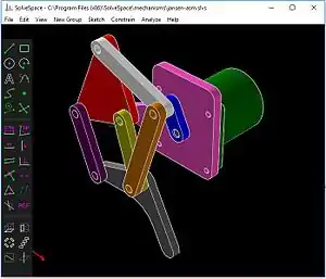 ![]() A mechanical simulation in SolveSpace | |