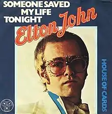 "Someone Saved My Life Tonight" is a song, with music by English musician Elton John and lyrics by Bernie Taupin, from John's 1975 album Captain Fantastic and the Brown Dirt Cowboy. It was released as a single on 23 June 1975, the only single released from the album. Like the rest of the album, the song is autobiographical; it tells the story of an attempted suicide by John.