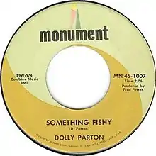 "Something Fishy" is a song written and recorded by American singer-songwriter Dolly Parton. It was released as a single on May 8, 1967, by Monument Records. It would be included on Parton's 1967 debut album, Hello, I'm Dolly. The song peaked at number 17 on the Billboard Hot Country Singles chart, becoming Parton's first top 20 hit.