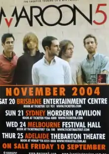- "MAROON 5 - SYDNEY & MELBOURNE 2004". Frontier Touring Company. April 2004. Retrieved February 11, 2019.