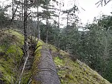 The water department of the Capital Regional District still owns pipe and the approximately 100 ft (30.5 m) wide corridor which includes large trees, cliffs, and mossy bluffs.