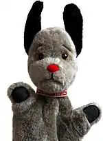 Sooty is a British children's television media franchise created by Harry Corbett incorporating primarily television and stage shows. The franchise originated with his fictional glove puppet character introduced to television in 1955, with the franchises focused around the adventures of the character – a mute yellow bear with black ears and nose, who is kind-hearted but also cheeky, performs magic tricks and practical jokes, and infamously squirts his handler and other people with his iconic water pistol, including on other television programmes he guest stars on. The franchise itself also includes several other puppet characters who were created for television, some of whom became the backbone to performances, and features additional elements including an animated series, two spin-off series for the direct-to-video market, and a selection of toy merchandising.