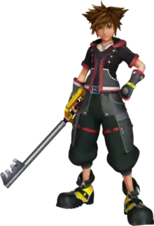 Across the series, Sora is depicted as a cheerful teenager who cherishes his friendships and relies on them for his strength.[32] As a result, several of Sora's enemies use his friends as bait to use the Keyblade for their purposes.[33] During the first game, it is discovered that Sora was not meant to wield the Keyblade, which only chooses him in the absence of its intended owner, Riku.[34] However, Sora's greater strength of heart causes the Keyblade to reject Riku in favor of Sora.[35]