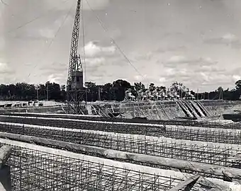 The bunker was never completed as a result of the bombings by the British and United States air forces as part of Operation Crossbow against the German V-weapons program and the Normandy landings in June 1944.