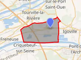 A farming village situated in a meander of the river Seine, some 10 miles (16 km) south of Rouen at the junction of the D91, D92 and the D292 roads. The A13 autoroute runs through the commune's territory.