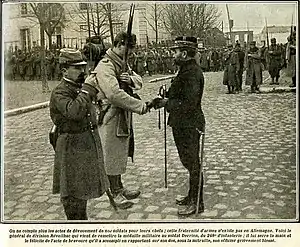 In March 1915, units of the French Army holding a section of the Western Front through Champagne had seen no tangible results despite two months of fighting. After two recent unsuccessful attacks, the 21st Company of the 336th Infantry Regiment (part of the 60th Infantry Division) was ordered by Général de division Géraud Réveilhac to retake positions captured by the Germans north of the village of Souain in the Marne. A bayonet assault would begin at 5 am on March 10 against a stretch of enemy trenches that was heavily defended by machine guns and barbed wire. Several unsuccessful attacks had already left this part of No Man's Land strewn with French dead.