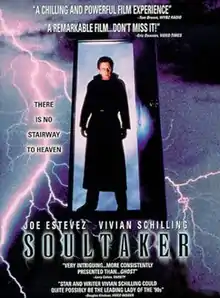 Soultaker is a 1990 American fantasy horror film written by Vivian Schilling and directed by Michael Rissi. It stars Joe Estevez in the title role, alongside Vivian Schilling, Gregg Thomsen, Chuck Williams, Robert Z'Dar, and David "Shark" Fralick. The film follows a group of young adults who try to flee from the titular "Soultaker" when their souls are ejected from their bodies after a car accident. Inspired by discussions with Action International Pictures producer Eric Parkinson, the script was based on a real-life car accident which Schilling was involved in.