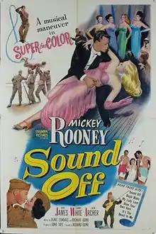 Sound Off is a 1952 comedy film featuring several songs, filmed in SuperCinecolor for Columbia Pictures and starring Mickey Rooney. The film was shot in August 1951.[1]