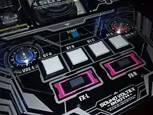 Sound Voltex (Japanese: サウンド ボルテックス, stylized as SOUND VOLTEX, often shortened as SDVX) is a series of music games by Konami. Sound Voltex Booth was tested on various cities in Japan starting on August 26, 2011 until September 19, 2011.[1] It was then released on January 18, 2012.