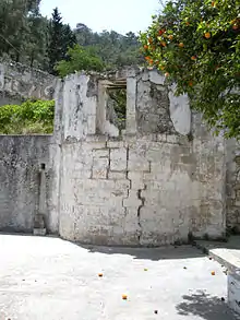 The Armenians retained control of Sourp Magar and its lands under Venetian and Ottoman rule. In the Ottoman Era, it was often called the Blue Monastery on account of the colour of the doors and windows. In 1642, at the time of Ibrahim I, the establishment was exempted from taxes. This exemption was renewed in 1660 and 1701.[4] Restoration work is recorded to have been undertaken in 1735 and again in 1814, when the larger of the two chapels was reconstructed.[5] Sourp Magar has, over its long history, served a wide range of social functions, from a school and rest-house for pilgrims to an orphanage and summer retreat for the Armenians of Nicosia. Some people lived on-site full-time, a report made in 1935 noting that 17 people resided there.[6] Sourp Magar once housed a collection of manuscripts and other sacred items, but these were re-located to the Holy See of Cilicia in 1947.[7] After the 1974 Turkish invasion, the Armenian community could no longer maintain custodians at Sourp Magar and the complex fell into ruins. Armenians nonetheless retain great attachment to their ancient establishment. Thanks to the efforts of Armenian Cypriot MP Vartkes Mahdessian, three pilgrimages have been made there, the last of which took place on 9 May 2010.[8]