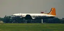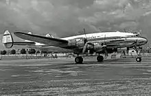 On 10 November 1945, SAA achieved a longtime company goal by operating a route to Europe when an Avro York landed in Bournemouth, England, after the long flight from Palmietfontein Airport near Johannesburg. These were replaced by the Douglas DC-4 from 1946-onwards, which in turn was replaced by the Lockheed Constellation on international routes in 1950. Also of note in the postwar era was the DC-3 Dakota, of which eight served with SAA, the last example being withdrawn as late as 1970.[19]